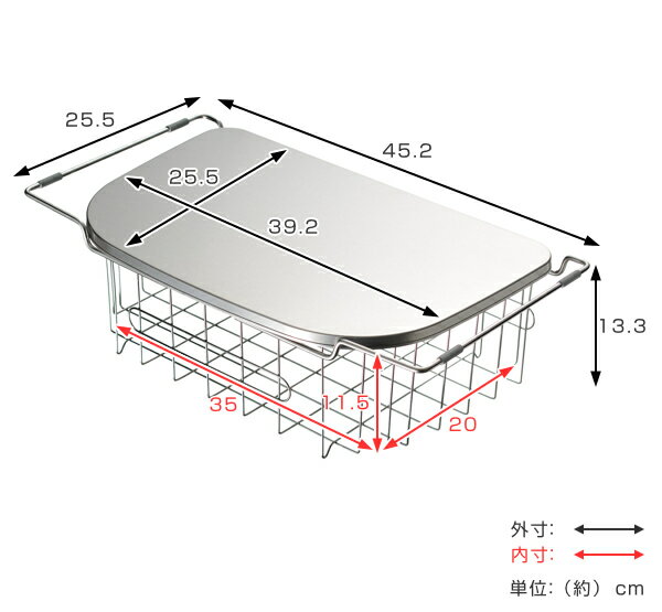 サイズ約 幅25.5×奥行45.2×高さ13.3(cm)(すべり止めゴム部含む)トレーサイズ:約 幅25.5×奥行39.2(cm)重量:約920g内容量水切りカゴ、トレー材質本体:ステンレス鋼(クロム18%、ニッケル8%)トレー:ステンレス鋼(クロム18%)すべり止めゴム:合成ゴム生産国日本製備考最大積載荷重/7kg使用可能なシンクの奥行内寸/約41〜43.5cm(伸縮しません)商品区分水切り/洗い桶/三角コーナーカテゴリから探す水切りカゴ 調理スペースが広がるトレー&水切り leye レイエ 日本製調理スペースが広がる水切りカゴにトレーでフタをすれば、シンクの上に置き場所が増えて調理スペースが広がります。