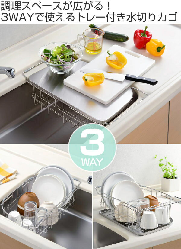 用途に合わせて選べる深型のカゴはシンク内でも、トレーを水受けにして作業台の上でも使用できるので、用途に合わせて使い分けられます。