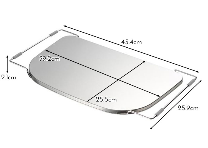 サイズ約 幅25.9×奥行45.4×高さ2.1(cm)(脚ゴム部含む)トレーサイズ:約 幅25.5×奥行39.2(cm)重量:約510g内容量1個材質トレー:ステンレス鋼(クロム18%)ハンドル:ステンレス鋼(クロム18%、ニッケル8%)脚ゴム:合成ゴム生産国日本製備考最大積載荷重/5kg使用可能なシンクの奥行内寸/約39.5〜44cm(伸縮しません)注意※他のサイトも運営しておりますのでタイミングにより在庫切れの場合は改めてご連絡いたします。