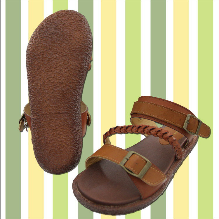 燻しの効いた金具使いが、レトロでシックなサンダル 編みベルトを織り交ぜて、ウエスタンなアクセントを効かせています。