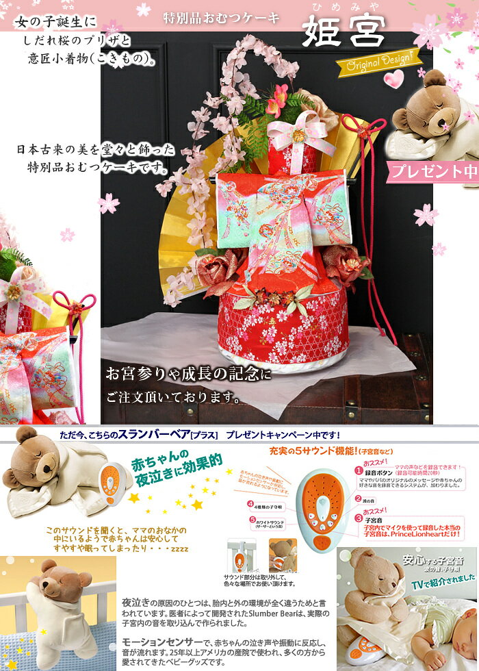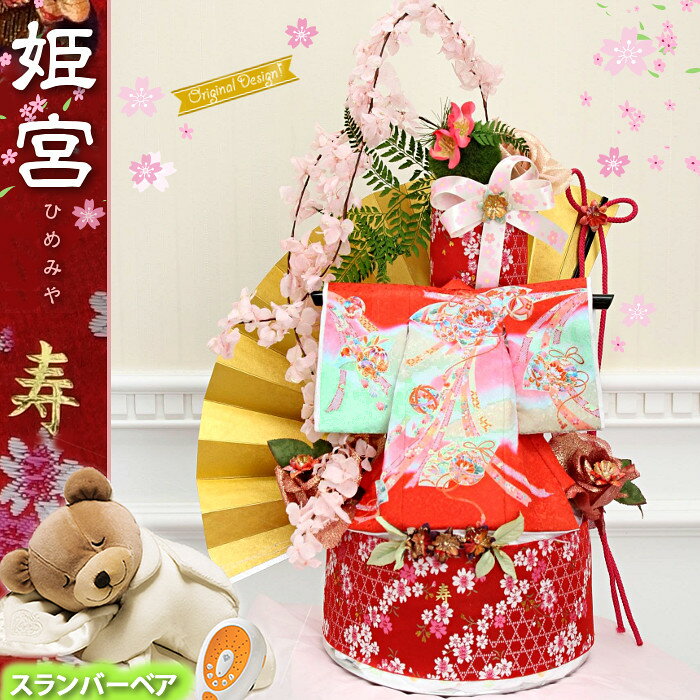 女の子『お宮参り』出産御祝いに最高級 【姫宮】3段おむつケーキ■ 意匠小着物と枝垂れ桜を飾ったオムツケーキ 節句 お祝い お雛さま 特別品[送料無料] 初孫