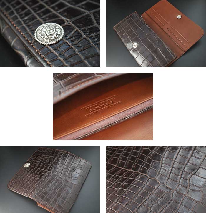 本製品で使用されているソルトウォータークロコダイル(ポロサス)は、一般的に全ワニ類の中でも最も腹部の鱗が細かく、美しく、整然と配列されていることから、最高級皮革として扱われています。